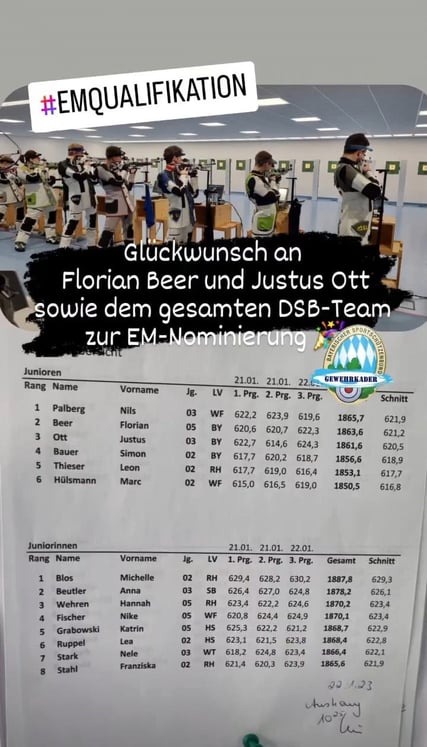 Florian repräsentiert damit vom 5.-15. März 2023 den Stiftlandgau international und vertritt den Deutschen Schützenbund mit 5 weiteren Junioren bei der Europameisterschaft in Estland.