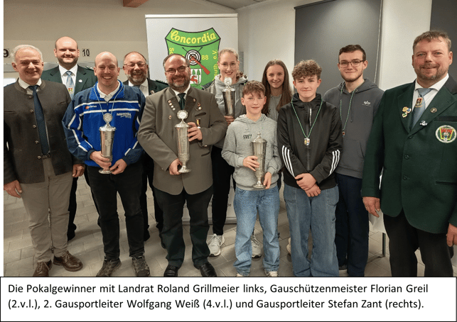 1.Gauschützenmeister Florian Greil begrüßte zur Siegerehrung im Schützenheim der SG Concordia 1888 Konnersreuth neben den beiden Gausportleitern, Stefan Zant und Wolfgang Weiß, die für die Durchführung zuständig waren den Schirmherrn Landrat Roland Grillmeier und 1.Gauschützenmeister Andreas Nickl vom Gau Armesberg in einem voll besetzten Schützenheim.
